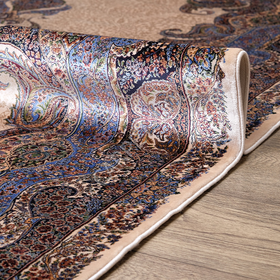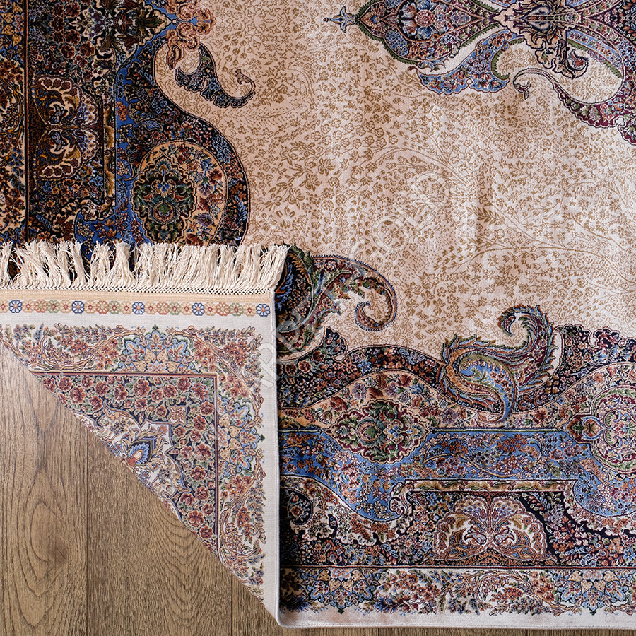 Ковер турецкий 2018A QUM (Шелк+Модал, синий, кремовый)