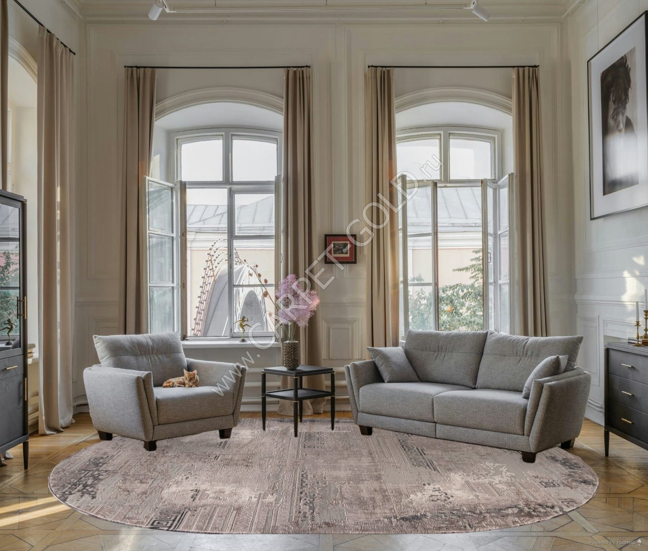 Ковер турецкий O1899-995 Brand (Хит-сет, бежевый, серый) овальный